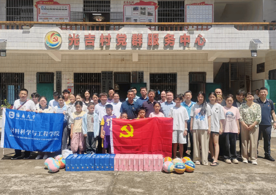 为深入学习贯彻落实习近平总书记提出的“全面推进乡村振兴”、“实现科教兴国战略、强化现代化建设人才支撑”等精神,2025年6月28日,材料科学与工程学院行政党支部、天然橡胶中心党支部和海洋功能高分子党支部赴临高县南宝镇光吉村开展“党建引领聚合力,结对帮扶兴教育”主题党日活动。