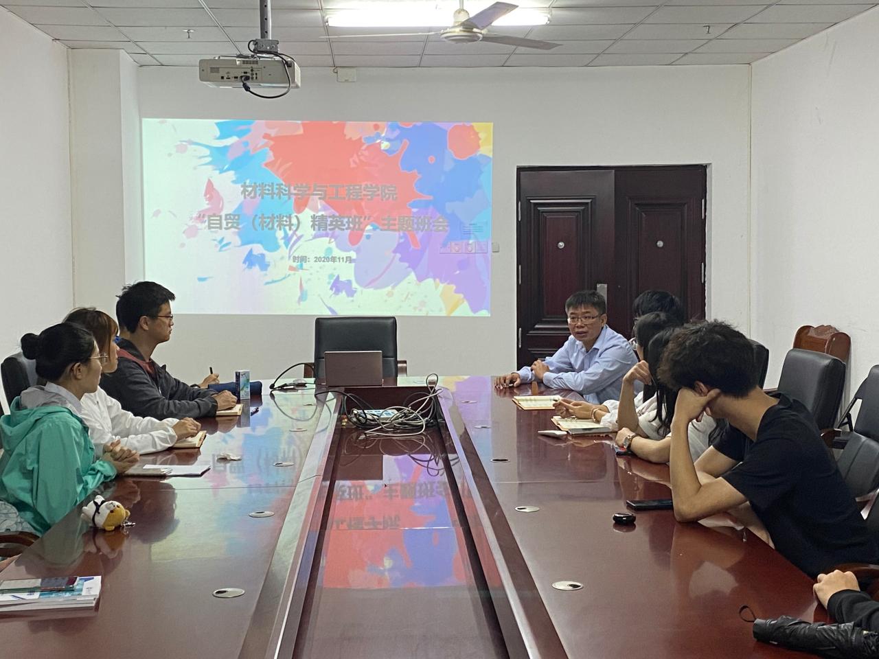 11月14日上午,学院首届“自贸(材料)精英班”主题班会在研发中心717会议室召开。学院党委副书记胡先文、学工办负责人郎筱宇以及“自贸(材料)精英班”成员参加了班会活动。