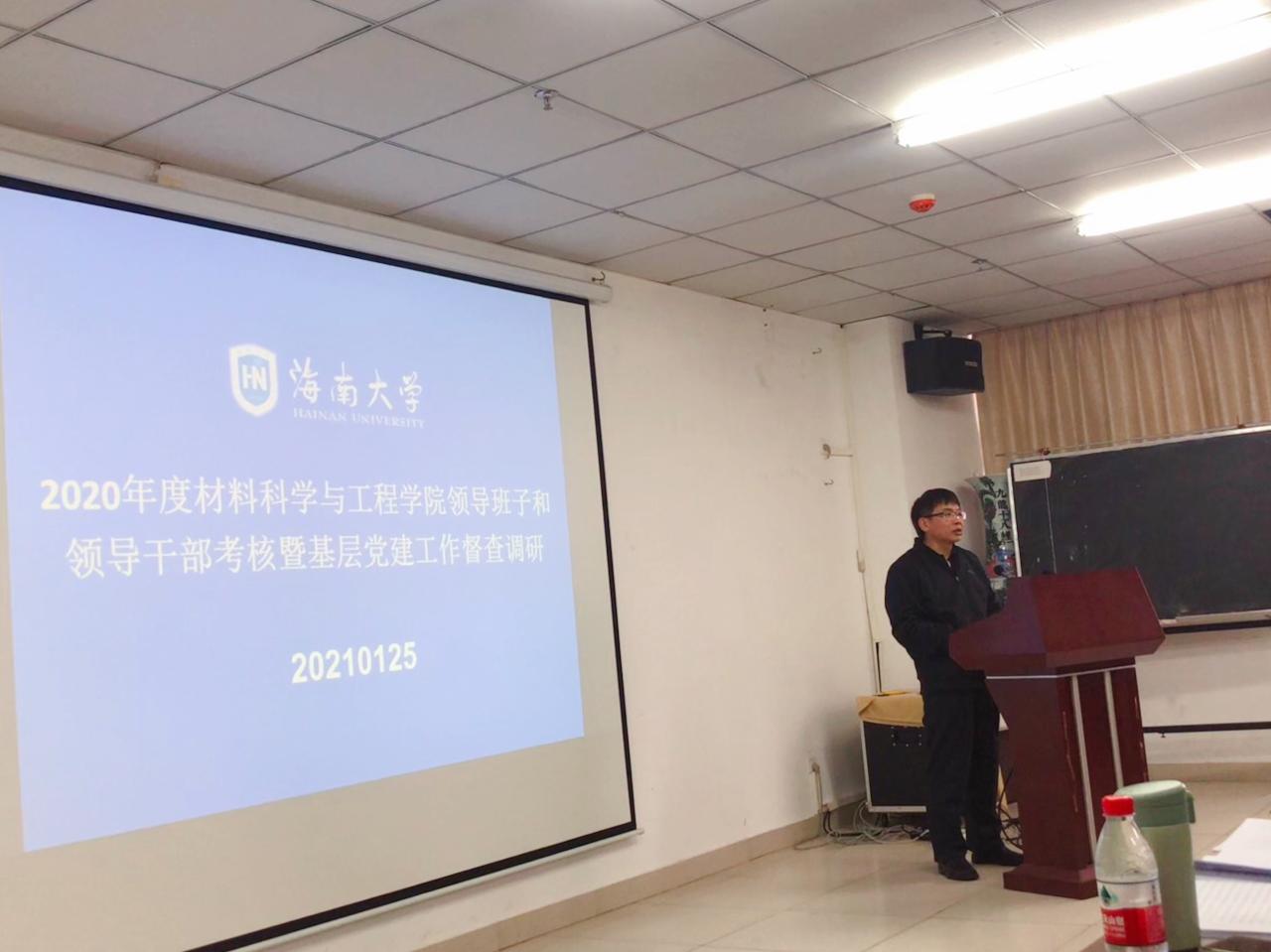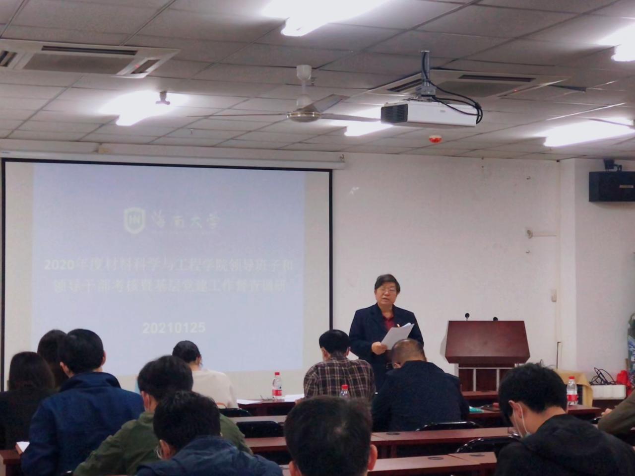 2021年1月25日下午,材料科学与工程学院在研发中心710会议室召开2020年度领导班子述职述廉大会。学校考核组组长、政治与公共管理学院党委书记王默忠,考核组成员外国语学院党委副书记李洋、外国语学院学工办主任刘颖敏、园艺学院辅导员李雪婷出席,学院领导班子全体成员、全院教职工参加会议。会议由学院党委书记胡先文主持。