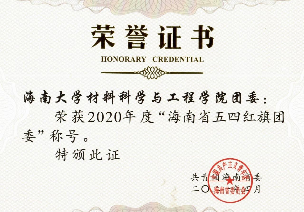 近日,我院团委获评2020年度“海南省五四红旗团委”称号。