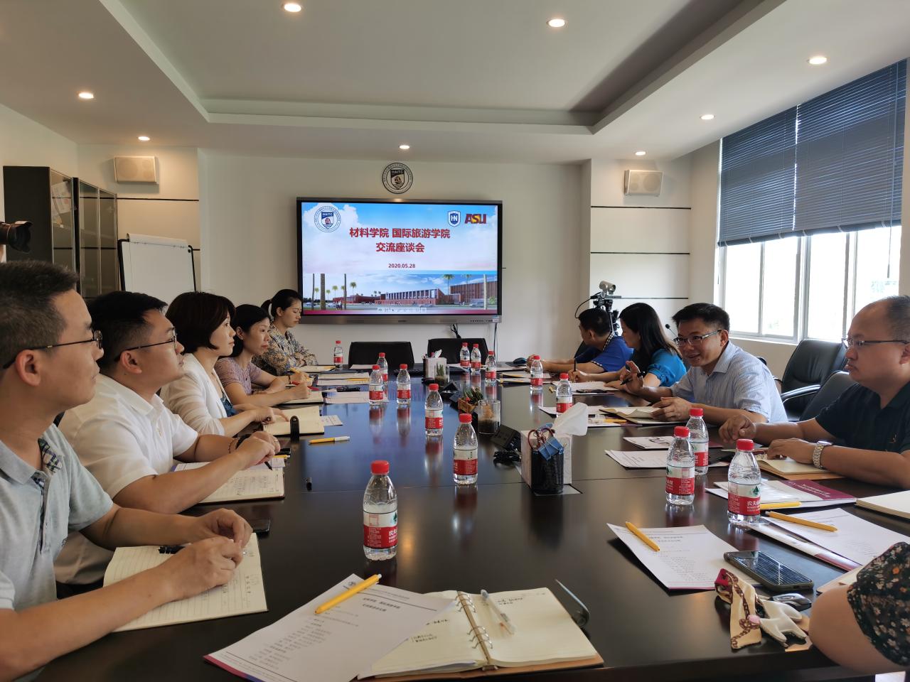 2021年5月28日下午,材料科学与工程学院胡先文书记一行8人到国际旅游学院学习交流。双方在田家炳楼412会议室进行了交流。出席交流会的有材料科学与工程学院党委书记胡先文,副书记周郭军,副院长李长久等,国际旅游学院党委书记何映敏,教学副院长李枚珍等。会议由国际旅游学院党委书记何映敏主持。