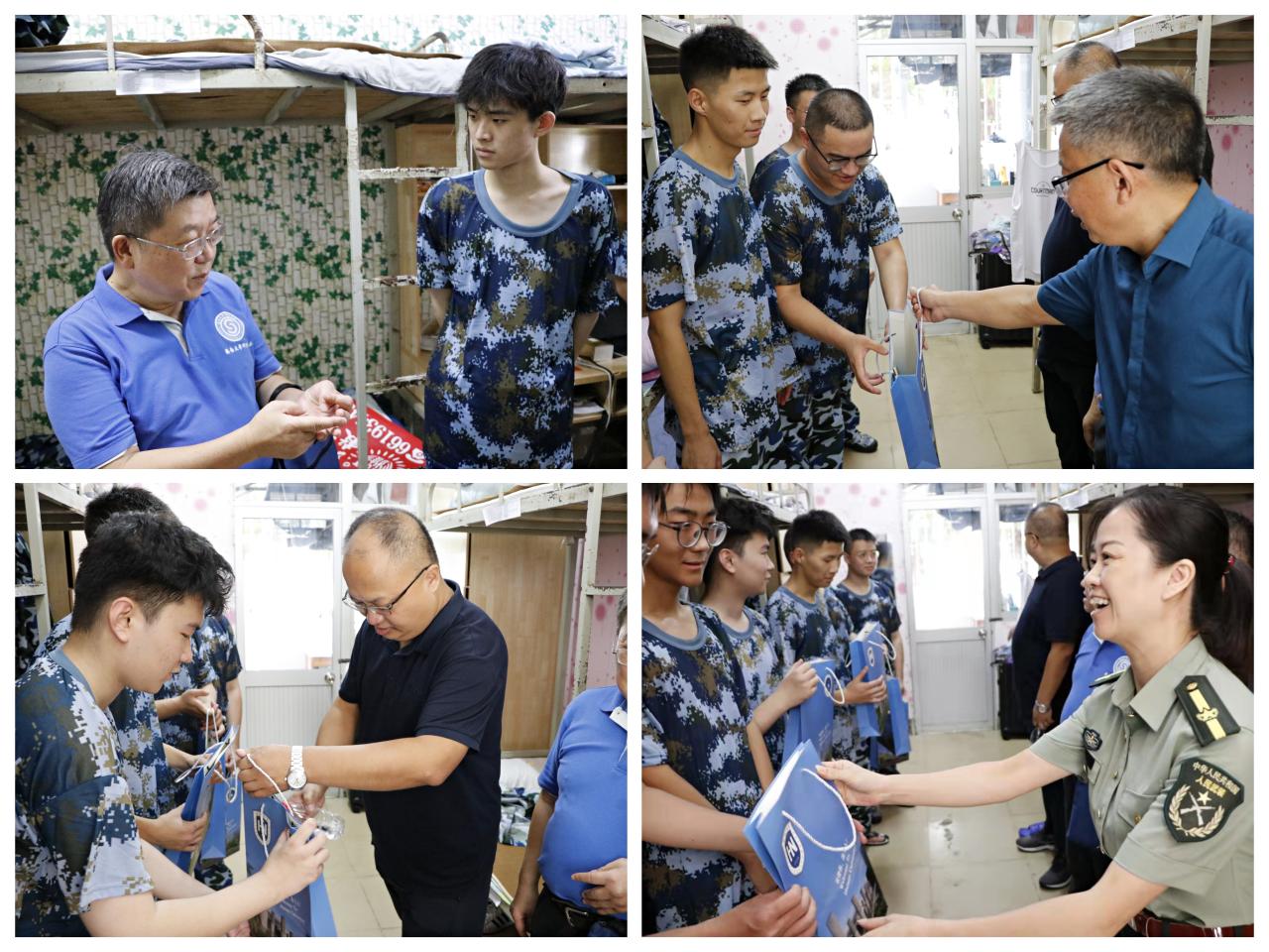 9月6日上午,学院廖建和院长、胡先文书记、李长久副院长、周郭军副书记,学工办辅导员,学生骨干一同到新生宿舍进行慰问,并为新生送上迎新大礼包。一件印有“材料”两字的T恤、一本学习记录本、一把扇子,饱含了学院对新生的殷殷期望。