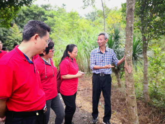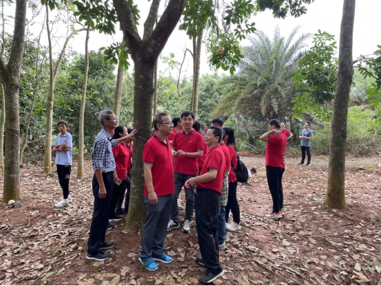高分子系教工党员及教师代表实地走访了研学基地,尤其对天然橡胶林的品质与规模进行了评估,就如何开展学生的劳动教育进行了热烈探讨,并从华侨农场的历史背景出发对思政教育进行了讨论。通过本次党日活动,充分实现了党支部对系教学活动的引领指导作用。