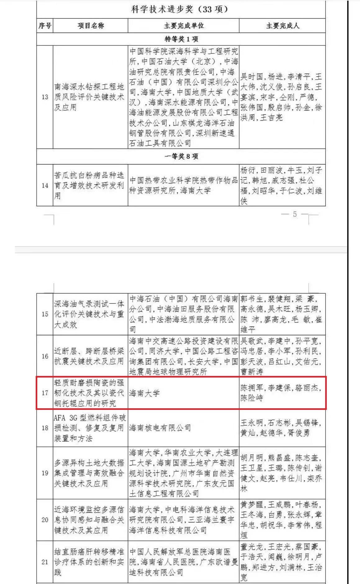 11月30日,海南省发布关于2020年度海南省科学技术奖励的决定,公布47项荣获2020年度海南省科学技术奖的成果,对海南省科学技术进步、经济社会发展作出突出贡献的科学技术人员和组织给予奖励。我院陈拥军教授、骆丽杰副教授荣获2020年海南省科学技术进步奖一等奖,并作为获奖代表发言。