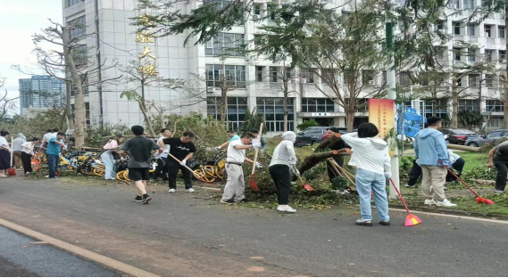 学院从9月8日到9月13日,在学院党委的组织领导下,先后组织5次志愿者活动,进行校园主干道清理工作。党员同志充分发挥先锋模范作用,迎难而上。学院教职员工积极参与,大家一同克服困难,齐心协力,对校园内的倒伏树木、积水与杂物进行了清理,出色完成了相应片区倒扶树木及垃圾的清理工作。