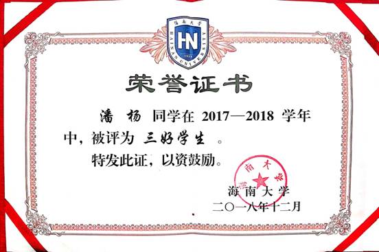 同时身为班长的她,更是严格的要求自己,以身作则;及时传达学院的通知、转达学生的意见,跟班主任一起做好班级管理和沟通工作。作为一名共青团员,她思想端正,切实履行自己的责任和义务,做好带头作用,并在2018年度获得“校级优秀共青团员”称号。