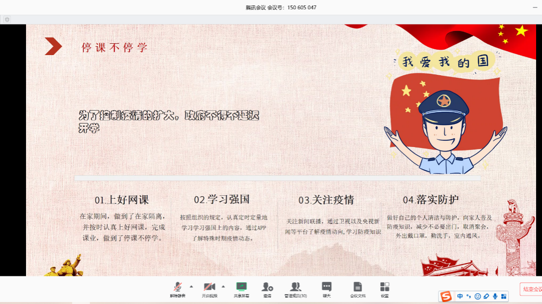 各党员在学习文件之后统一做出PPT以及文稿,向组织汇报学习感悟。大家积极踊跃发言,针对党的脱贫攻坚精神、主要任务、基本内容,面对疫情采取举措的意义和张桂梅精神等方面展开分享讨论。其中夏竭徽同志说道:“国难当前,中华人民紧紧凝聚一团,万众一心,一方有难,八方支援。并且听党指挥,不外出,自觉隔离,注重防护;为需要援助的地区募捐,各地派出医护人员前往武汉驰援,为疫情的控制做出了巨大贡献。