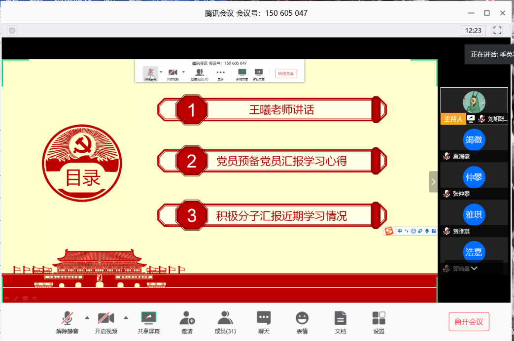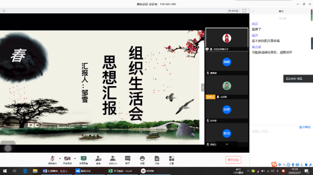 2020年3月27日下午,材料科学与工程学院材料系本科党支部开利用腾讯会议平台开展了3月份组织生活会,支部党员共35人,出席28人,另积极分子参会5人。