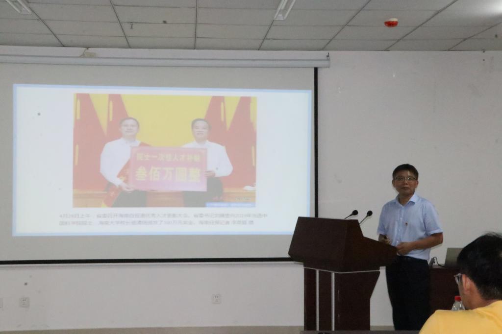 学院副书记胡先文同志对现阶段学院党建工作作总结并提出下一步工作计划。他指出,2019年是材料学院谋篇布局起好步的“开局年”,学院党委始终秉承以制度建设为基础、通过“二联系三结合五公开”和“规范教研活动”的两个抓手,制订计划开展检查督查,促规范 ;建立健全管理体制机制,促保障 ;强抓六项建设,促实效;围绕学科人才中心工作,促发展。在中心工作方面,材料科学学科进入ESI全球前1%,孕育海南名家6名,南海青年1名,学校科研创新团队5个,申报国家自然科学基金32项(完成率150%),一堂好课1名等。在三全育人方面,学院大力推动以“课堂思政三分钟,立德树人一辈子”课程思政育人为核心的“三全育人”体系,深入挖掘材料类专业课程的思政教育功能,把立德树人融入专业知识教育。同时,党建工作获省级课题立项1项,发表论文7篇。他强调,2020年是材料学院精准发力抓重点的“关键年”,学院将会进一步加快人才引进,培育科研“三个重大”;进一步加强校友工作,拓宽学生就业渠道;进一步建立健全社会服务机制体制,服务海南自贸港建设;进一步加强国际交流与合作。