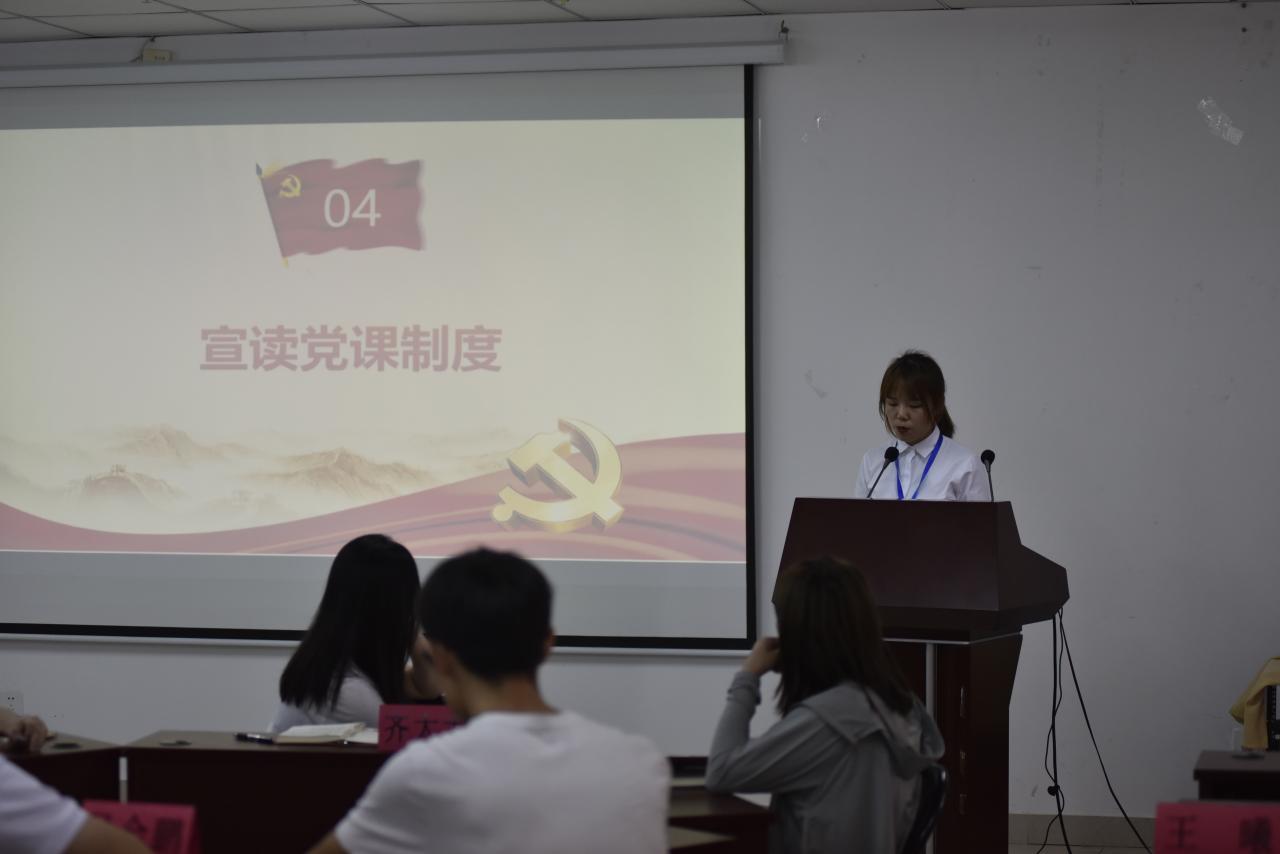 学生党建会陈书瑶宣读《材料科学与工程学院党课管理制度》