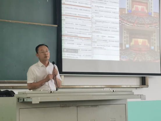 2023年5月17日,在3教210课室,材料科学与工程学院党委开展学习贯彻习近平新时代中国特色社会主义思想主题教育专题辅导报告会。本次专题由马克思主义学院吴朝阳副教授主讲,学院领导班子及学院全体党员参加。