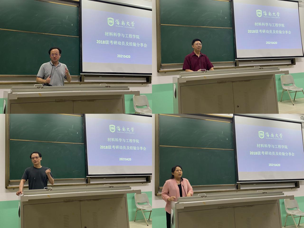 为进一步落实学校“分类指导、精准施策”的原则,稳步推进“六帮”工作要求,营造良好考研氛围,提升考研升学率,我院于4月20日晚7:30在3教210召开2018级考研动员及经验分享会。材料学院副院长林仕伟、党委副书记周郭军、材料系教师代表郝万军教授、高分子系教师代表徐鼐教授、赵艳芳教授,学工办负责人郎筱宇,优秀2017级学生代表以及2018级本科生参加会议。